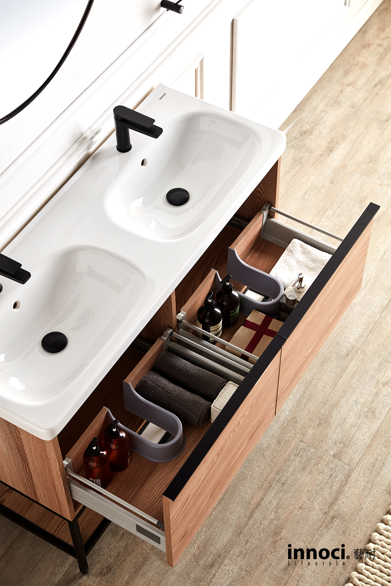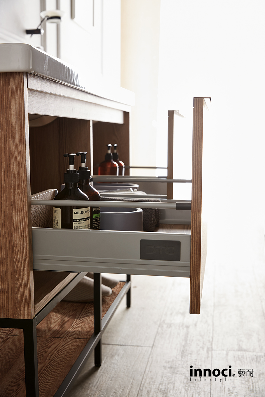 该系列浴室柜将功能性与时尚艺术相结合,最大程度地发挥它们的优势,功能上采用世界顶级配件,缓冲门铰设计,推拉畅顺,耐用防腐,经得住20万次的柜门运动,保证使用的安全稳定性。超大空间抽屉设计,适合摆放各种大体积的洗漱用品,轻松整理。